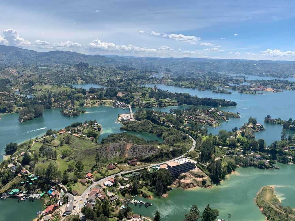 Vydejte se na jednodenní či dvoudenní výlet do Guatape. Jeďte metrem na stanici Caribe, kde je autobusový terminál. V přízemí budovy najděte kancelář č. 14 – společnost Sotrasanvicente. Autobusy jezdí od 6:00 do cca 19:00 každých zhruba 15 minut. Cena lístku je 19,000 COP. Za necelé dvě hodinky jízdy budete u Piedra del Penol – obrovské skály na kterou můžete za 25,000 COP vylézt a pokochat se hezkým výhledem na laguny a zálivy kolem. Čeká na vás ovšem přes 700 schodů (15-30 minut výšlap). Od skály se dostanete tuk tukem do centra za 15,000 COP, nebo autobusem stejné společnosti. Městečko Guatape je malebné s fontánkami, barevnými domy.