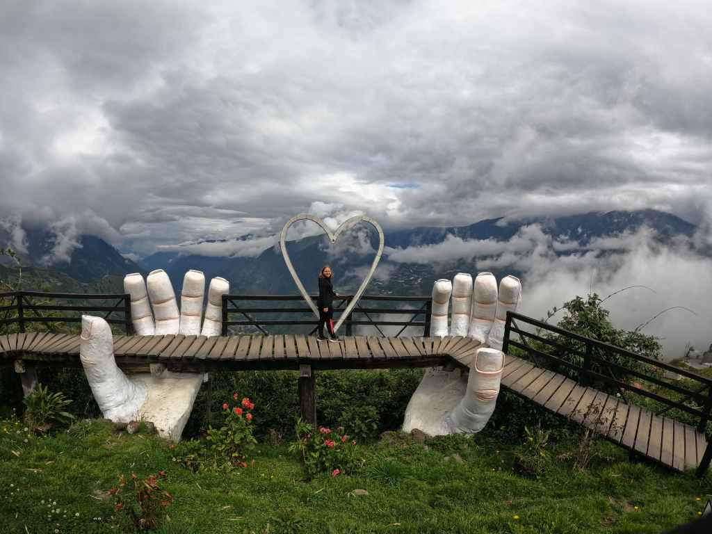 Nad městem (v těch vysokých kopcích :D) najdete spoustu krásných vyhlídek. Je tam mnoho areálů (většinou 2 USD vstup), kde máte foto koutky s houpačkami nad údolím, srdíčka atd. Můžeme doporučit Manos de dios, pěkný areál je také El Ventanal de Kong. Dostanete se tam taxíkem, nebo párty autobusem Chiva.