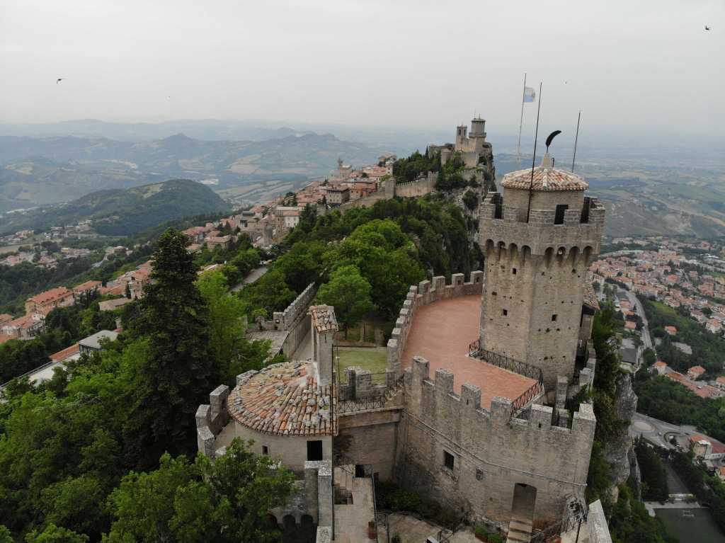 Město je vystaveno na nejvyšší hoře země – Monte Titano. Můžete autem vyjet až téměř na vrchol, parkování stojí pár Kč. Hora má tři vrcholky se třemi věžemi, které najdete i na státní vlajce. Výhled na okolní je odsud opravdu krásný.