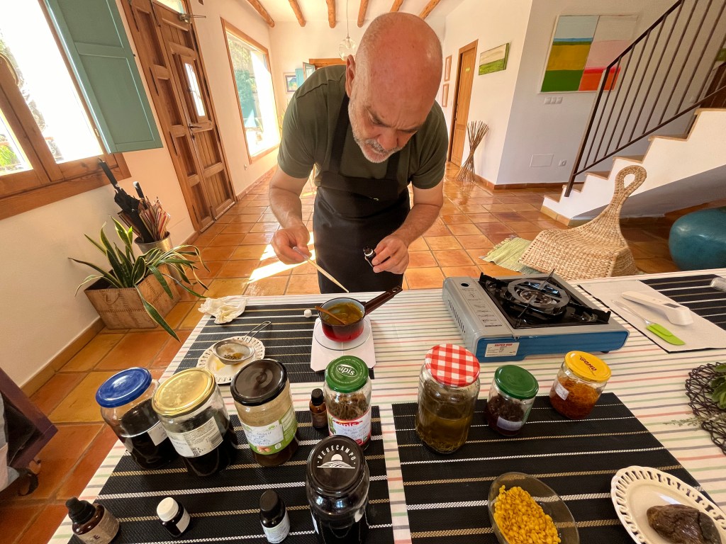 Další den jsme začaly jak jinak než dalším jídlem. Snídaně byla úžasná! Plně nabité energií jsme vyrazily prozkoumat okolí. Setkaly jsme se s Pepem a Monicou. Pepe je taková chodící encyklopedie, vše ví – a co neví, to hned zjistí. Ukázal nám, jak se vyrábí lokální krémy. Je to zajímavý proces skládající se z mnoha kroků, jako třeba tavení vosku. Přidávají se tam voňavé esenciální olejíčky. Na konec jsme od Pepeho dostaly každá kalíšek s krémem na hojení popálenin a odřenin, který vydrží neuvěřitelné tři roky! (Po pár dnech cestování musíme zhodnotit, že drží i v obrovských vedrech, vůbec se neroztíká..)