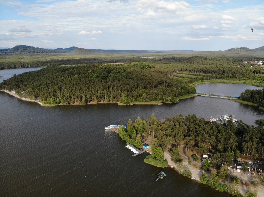Autobusem se vracíme zpět do Doks a valíme do přístavu, kde nám odplouvá loď po „Mácháči“. Jelikož ještě není úplně sezóna, tak plujeme se školním zájezdem – a je to skvělý! Kapitán lodi vytahuje i rohlíky, aby nakrmil kolem poletující racky. Obeplouváme kus jezera a kocháme se výhledem na břehy, kde trčí střechy domů. Na chvíli si připadáme jako zpátky v Guatemale u jezera Atitlán, kdo byl tak zná, kdo nebyl – musí vyjet.