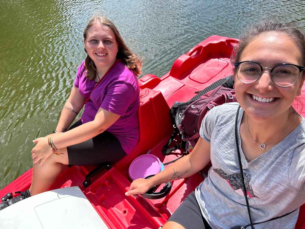 U rybníku Hastrman si můžete půjčit šlapadla, spíš musíte! To byl fakt super zážitek! Na šlapadlech jsme byly naposledy v Marylandu v USA (čti: v hnusným přístavu plném lodí..), teď jsme si to náramně užily. Půjčovné je 100 Kč za 30 minut a šlapadlo je určeno pro 4 osoby. Ovládání je jednoduché, pochopíte ho za pár vteřin, je tam jen jedna páčka na určení směru. Na rybníku plavala spousta kačen, ale viděly jsme i docela velké ryby.