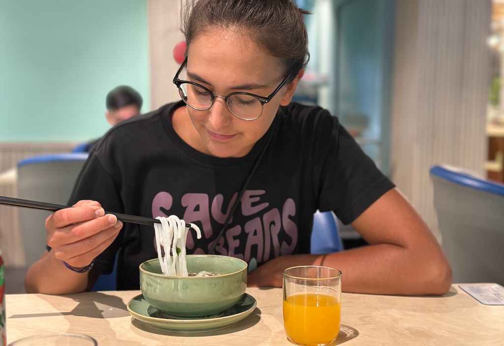 Jídelna je menší ale také s příjemným posezením, bufetový výběr byl trošku limitovaný – jedna polévka, místní rýže na milion způsobů, jeden druh smaženého masa. Žádné pořádné ovoce, ani zelenina. Co se nápojů týče, tak dva divné druhy Mirindy v plechovce, džusy, voda. Abychom pravdu řekly, tak co se jídla týče jde rozhodně o nejhorší salónek, kde jsme byly. Za vstup to úplně nestojí.
