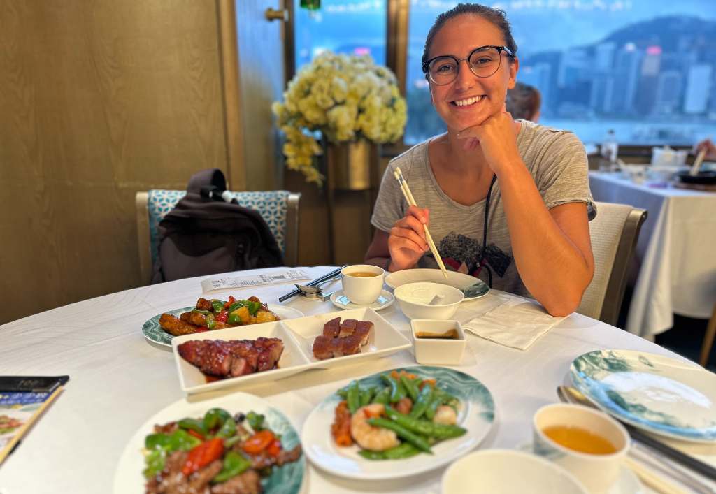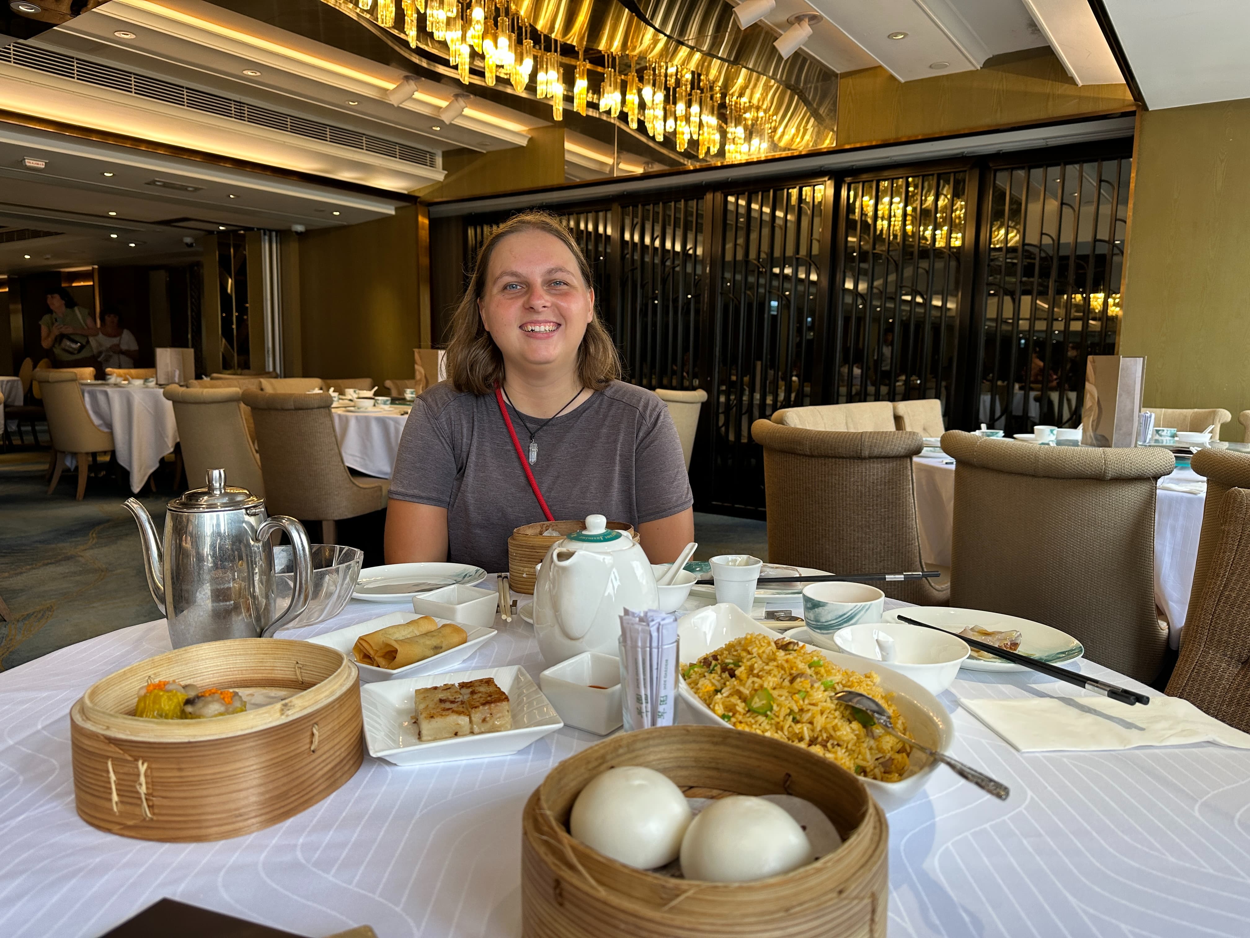 Kantonští šéfkuchaři tady dělají vyhlášené dim sum, hlavně Turnip Cake – ředkvový koláček. Nás tady naprosto nadchla smažená rýže s mořskými plody a polévka. Na závěr nás pobavil dezert degustačního menu – mandlové mléko. Obsluha nám přinesla hrneček s pokličkou, tak jsme ji napjatě sundaly a tam mandlové mléko. Nicméně je to fakt lahůdka!