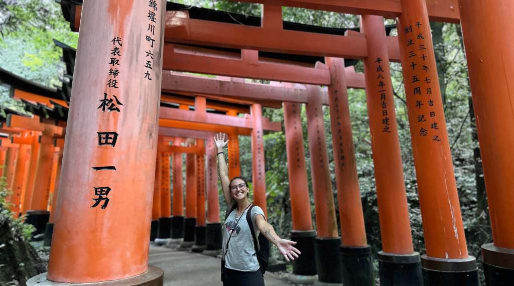 Nejvýznamnější svatyně věnovaná božstvu Inari – bohu rýže, úrody a prosperity byla založena v roce 711. Je tvořena více než 10 000 torii branami podél svatyně a po horské trase. Hlavní trasa vede na vrchol hory Inari (233 m) a 4 km zaberou zhruba 2-3 hodiny. Každá torii brána je dar – jméno mecenáše a datum jsou vrytá na zadní straně. Svatyně je otevřená 24/7 a zdarma. Vlak staví hned před vchodem. Počítejte s extrémními davy lidí, hlavně během sezóny. Přijďte ideálně brzy ráno, nebo večer.