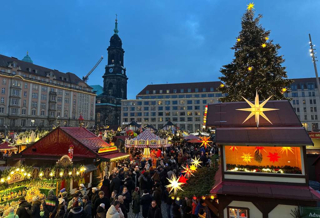 Poté, co jsme se z Moritzburgu vydaly směrem do Drážďan, ponořily jsme se přímo do vánočního víru. Hlavní trh Striezelmarkt na náměstí Altmarkt patří k nejstarším vánočním trhům — jeho tradice sahá až do roku 1434. To znamená: století a století perníků, štoly, punče, ručně vyráběných ozdob a vánoční magie. A my jsme tam byly — s čokoládou v ruce a rozzářenýma očima.