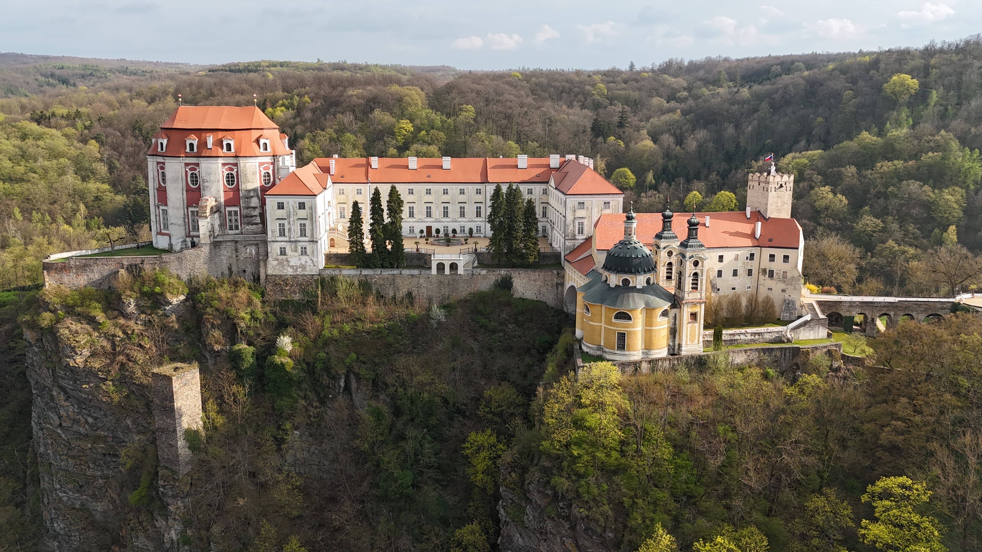 Přiznáváme – zámek jsme měly původně v kategorii „rychlá zastávka a jít dál“. No… chyba. Jakmile ho uvidíte z dálky, pochopíte. Stojí na skále nad řekou a vypadá fakt impozantně. Takové to místo, kde si říkáte, jak to tam vůbec někdo mohl postavit. Každá jízda kolem něj byla epická.