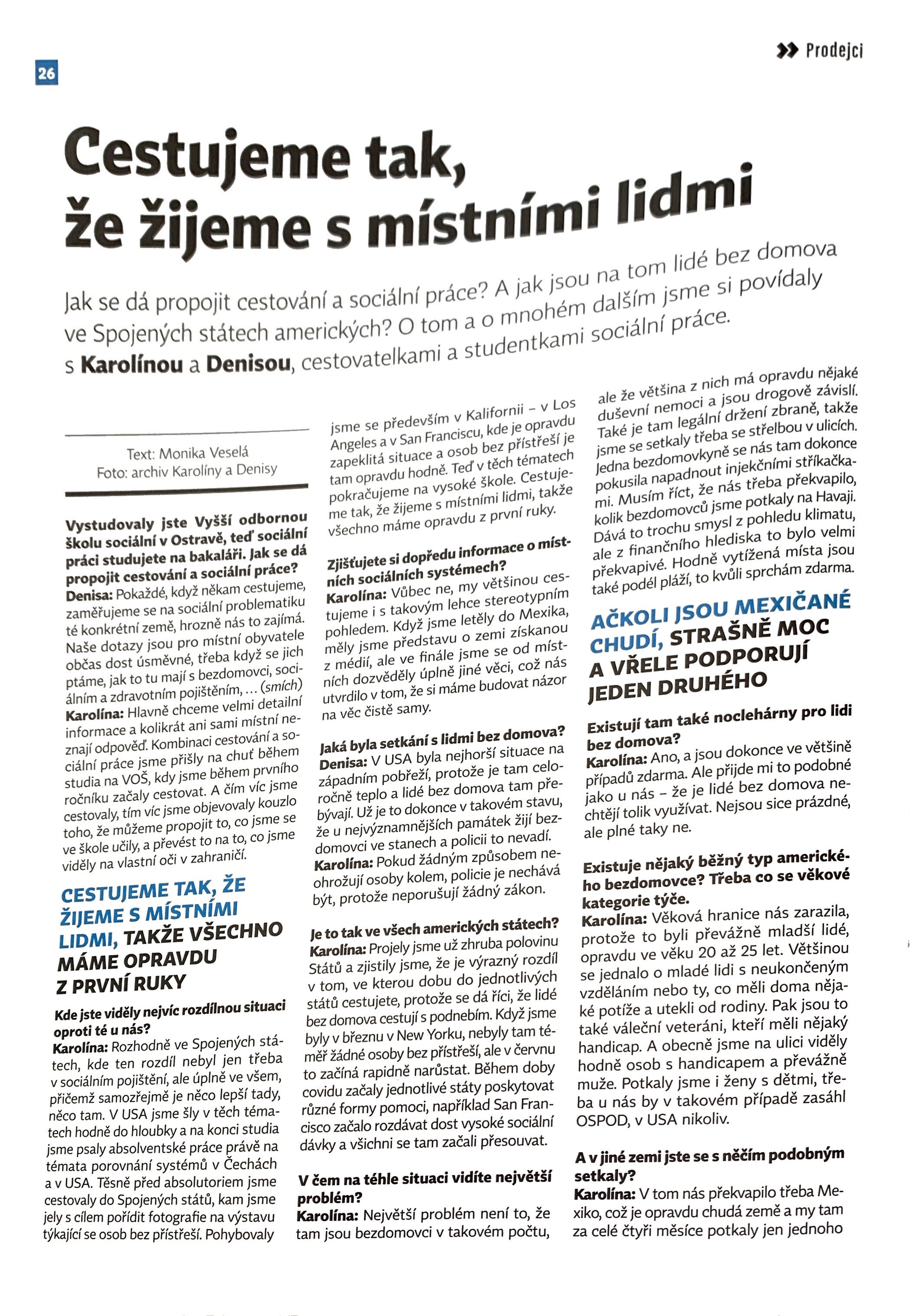 Naše články vyšly v časopisech:Travel Life: 03/2022, 04/2022, 01/2023, 03/2023, 01/2024, 02/2024, 03/2024Žlutý: 07-08/2023, 01-02/2024Nový prostor – č. 590 rok 2022Řepská sedmnáctka – 04/2021